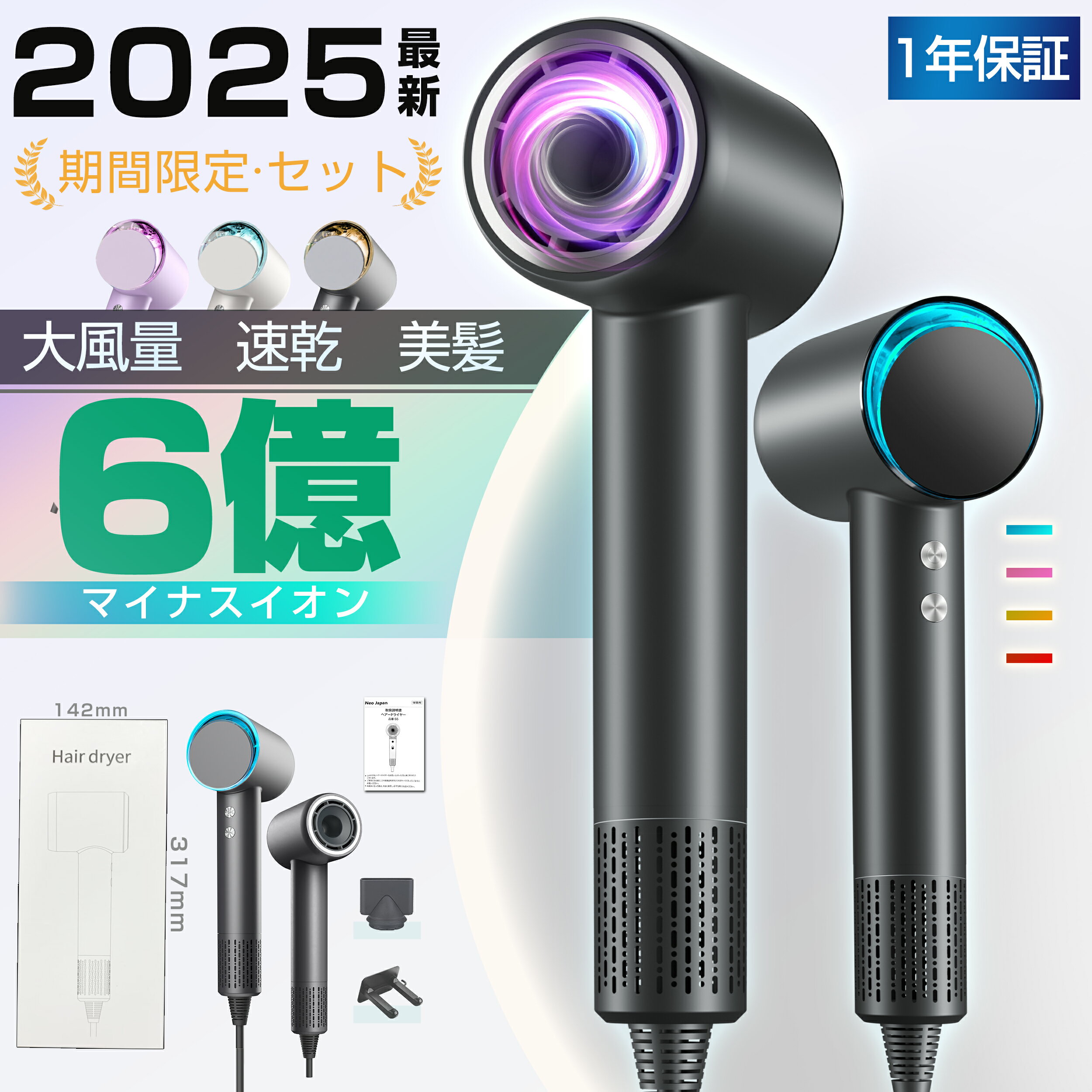 【50%OFFクーポン利用で 】 ドライヤー 進化型高速 速乾 大風量 ヘアドライヤー 6億マイナスイオン マイナスイオン 冷熱風 軽量 ヘアケア 過熱保護 静電気除去 コンパクト 人気 髪質改善 美容家電 ヘアケア 美髪 時短 家庭 お歳暮ギフト PSE認証 おしゃれ おすすめ