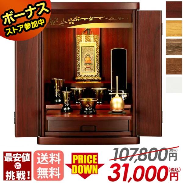 仏壇 コンパクト 桐仏壇 ミニ モダン「限定価格 107800円を31000円」おしゃれ 家具調 ナチュラル 白 紫檀 小さい仏壇 半額越え「華蓮15号」