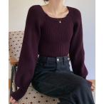 ニット セーター スクエアネックセーター ボリュームスリーブ レディース