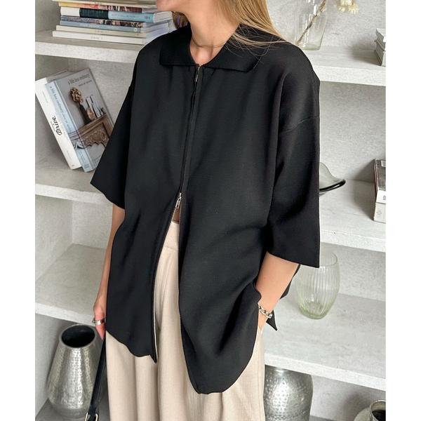 ニット セーター 「ハンドウォッシャブル」ハーフスリーブZIPカーディガン レディース