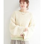 ニット セーター フレアスリーブクルーネックリブニット レディース