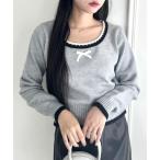 ニット セーター バイカラープチリボンニットトップス レディース