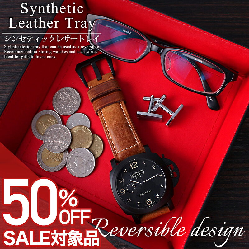 【50%OFF半額 \1,650-円引】レザートレイ 小物入れ インテリア 腕時計 トレー 収納 時計 メガネ 眼鏡 サングラス 鍵 コイン 置き ケース 玄関 寝室 出張 旅行 出張先 仕事場 デスク 机 合皮 革 メンズ レディース ボールペン カフス タイピン アクセサリー 机周り 整理