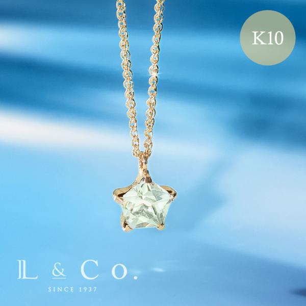 ネックレス レディース 10金 K10 イエローゴールド チェーン 揺れる グリーンアメジスト シンプル スター 星 プレゼント ギフト L&Co. エルアンドコー