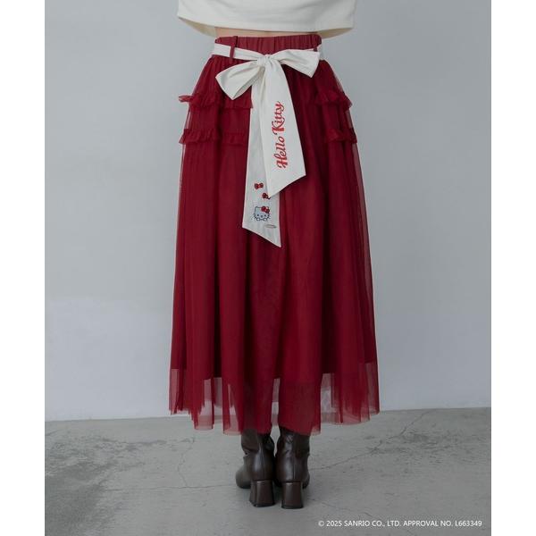 スカート 「HELLO KITTY」ハローキティコラボ リボン付き ボリュームチュールスカート