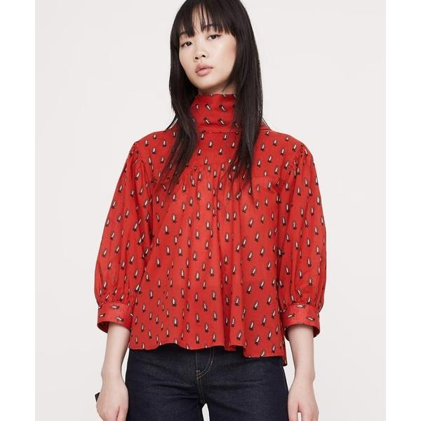ブラウス シャツ ストレッチ コットン パフスリーブ トップス レディース