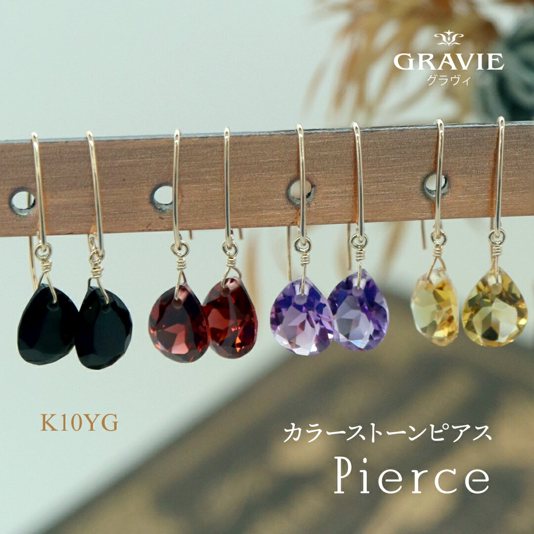 【12/3~11スーパーSALE 50%OFF】ピアス カラーストーン K10 YG オニキス ガーネット アメジスト シトリン フック しずく ドロップ イエローゴールド 母の日 記念日 記念 結婚記念日 お祝い 誕生日 無料メッセージカード