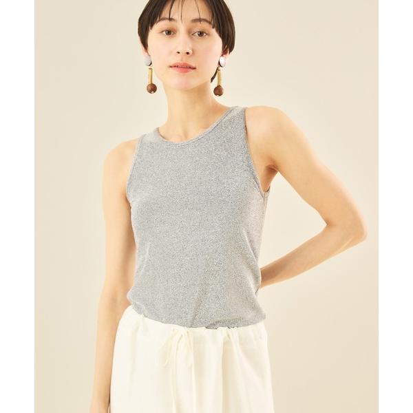 タンクトップ ノースリーブ カップ付きラメ混タンクトップ レディース