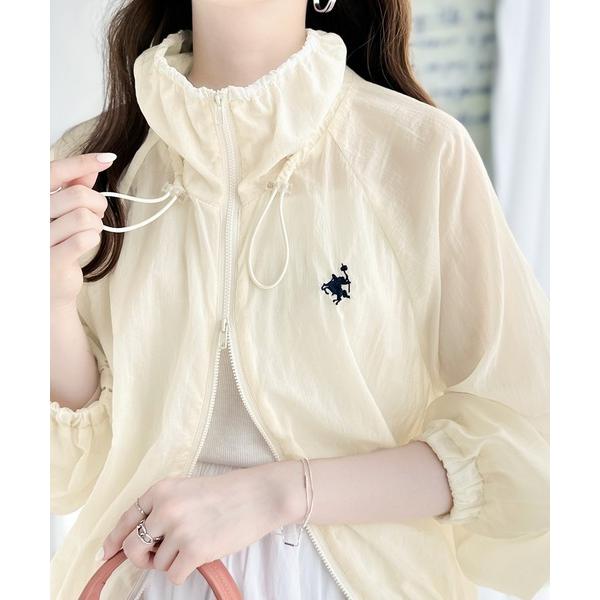 ブルゾン アウター 軽い着心地がやみつき。胸刺繍スタンドネックショート丈ドロストシアーブルゾン レディース