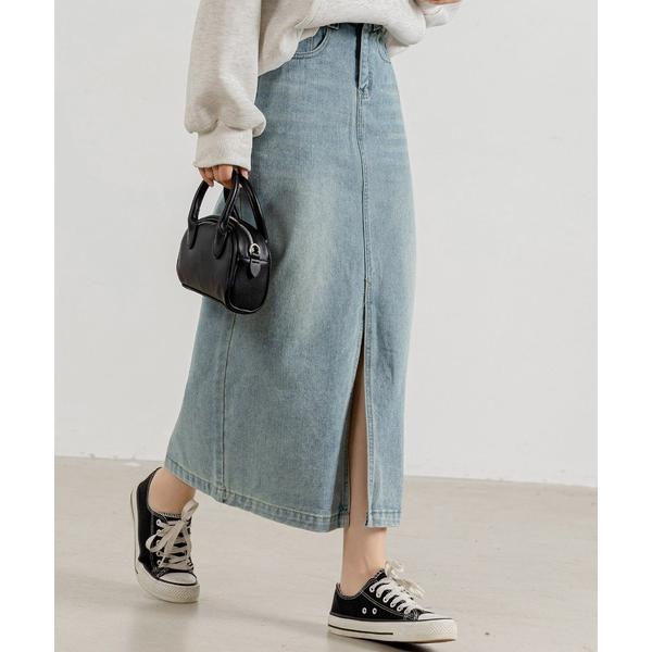デニムスカート レディース フロントスリットデニムナロースカート ロング