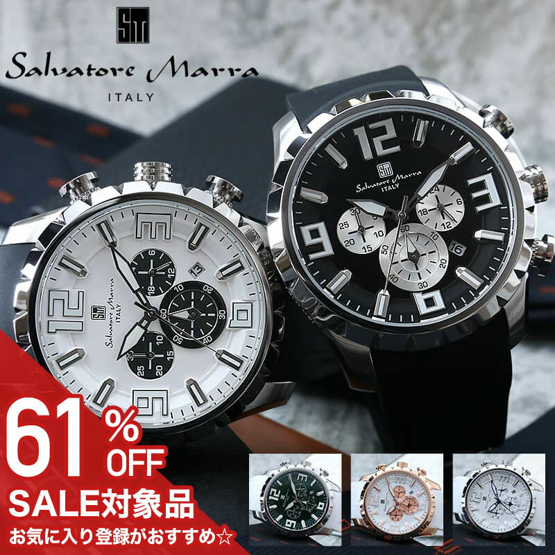 【61%OFF半額 23837円引】サルバトーレマーラ 時計 メンズ 腕時計 Salvatore Marra サルバトーレ マーラ 男性 父 父親 旦那 恋人 彼氏 息子 黒 白 緑 文字盤 ラバーベルト 大きめ アナログ シンプル クロノグラフ プレゼント ギフト 誕生日 おしゃれ ブランド 定年 成人 退職