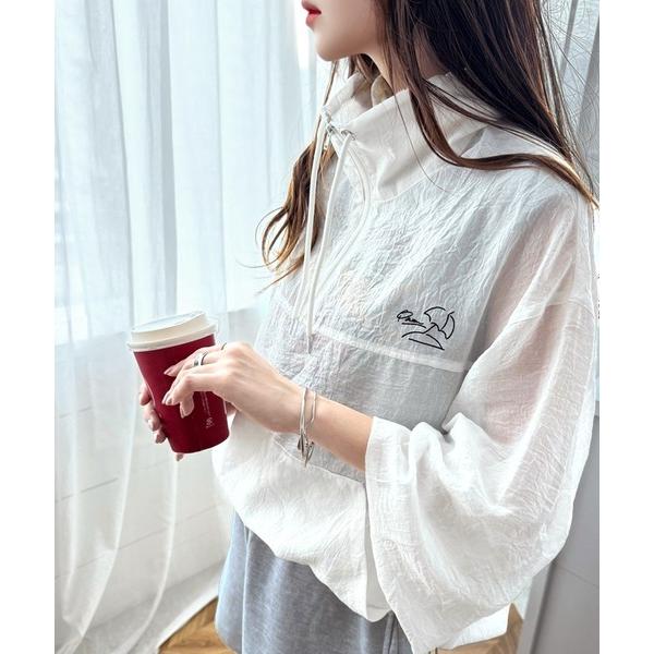 tシャツ 軽やかにこなれ感も漂う。冷房や日焼け対策にぴったり♪胸パラソル刺繍シアーハーフジッププルオーバー レディース