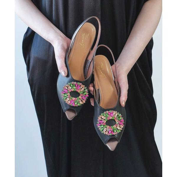 パンプス 「ALBANO」ビジューリボンヒール/ストラップ