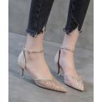 パンプス ストラップ付き サイドオープン ビジュー ピンヒール パンプス