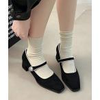 パンプス スエード調チャンキーポインテッドトゥパンプス