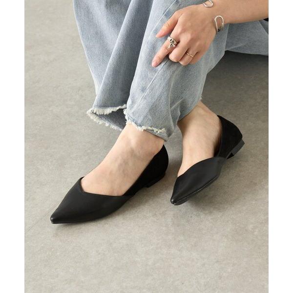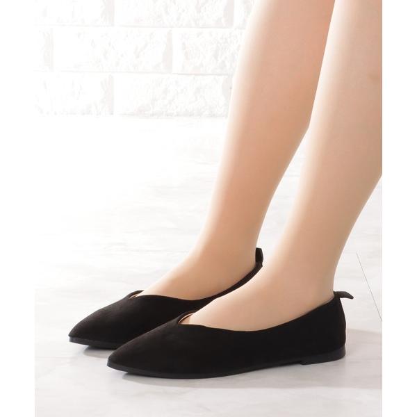 パンプス スエード調 ポインテッド Vカット フラット パンプス