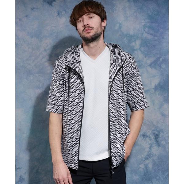 パーカー ジオメトリックプリント5分袖フードパーカー メンズ