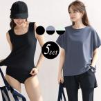 フィットネス水着 レディース 体型カバー 3点セット20代 30代 40代 50代 ママ水着 大きいサイズあり