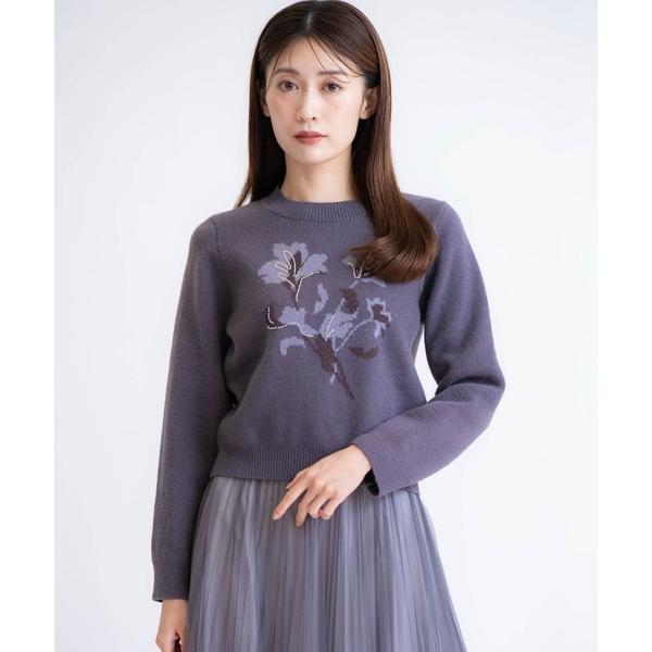 ニット セーター ビーズジャガードニット レディース