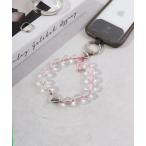 Ree&Mee ハート チャーム クリスタルビーズ ハンドストラップ スマホストラップ ブレスレット