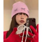 『タイムセール実施中』ZOZO問い合わせ番号:85394118ショップ:Ada.,エイダブランド:Ada.,エイダ商品名:ビーズ リボン デザイン ニット ビーニーカテゴリ:帽子>ニットキャップ/ビーニー...