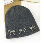 ニット帽 ニットキャップ ビーズリボンニットビーニー レディース