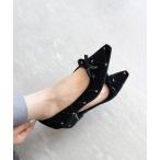 パンプス ビーズ×キルティング リボン ローヒールパンプス