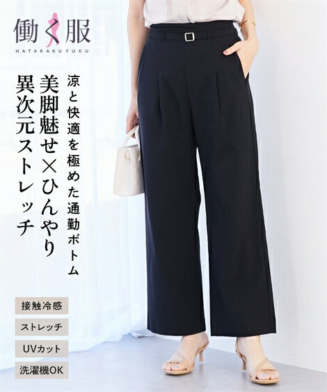 【全品対象クーポン配布中★先着100名 50%OFF★先着3,000名 25%OFF!12/4 20時開始】ワイドパンツ レディース ドライ タッチ ベルト付き ストレッチ ワイド パンツ 接触冷感 UVカット 有 夏 ゆったり 体型カバー 美脚 ボトムス ズボン ピスタチオ/ベージュ/黒 S〜4L nissen