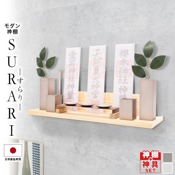 【限定セール】神棚 壁掛け モダン 国産 日本産桧使用 神具セット 壁掛け神棚 モダン神棚 シンプル かわいい モダン おしゃれ おすすめ コンパクト 人気 SURARI