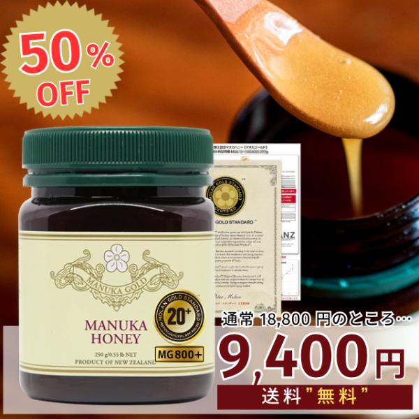 50%OFF!通常18800円⇒9400円! マヌカハニー 20+ 250g 1本 認定書/分析書付き MGS認証 マヌカゴールド MG800以上 モノフローラル 生 はちみつ 非加熱 無添加