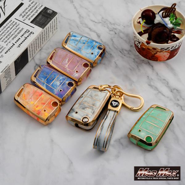 週末セール!!決済済限定特典・メール便送料無料!!フォルクスワーゲン専用 大理石調 TYPE B TPUスマートキーケース 各色