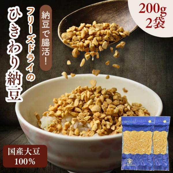 混ぜない ひきわり 納豆 400g 国産大豆100%【 お得 な 200g × 2袋 セット 】フリーズドライ お手軽 かけるだけ イソフラボン 腸活 乾燥納豆 ドライ納豆