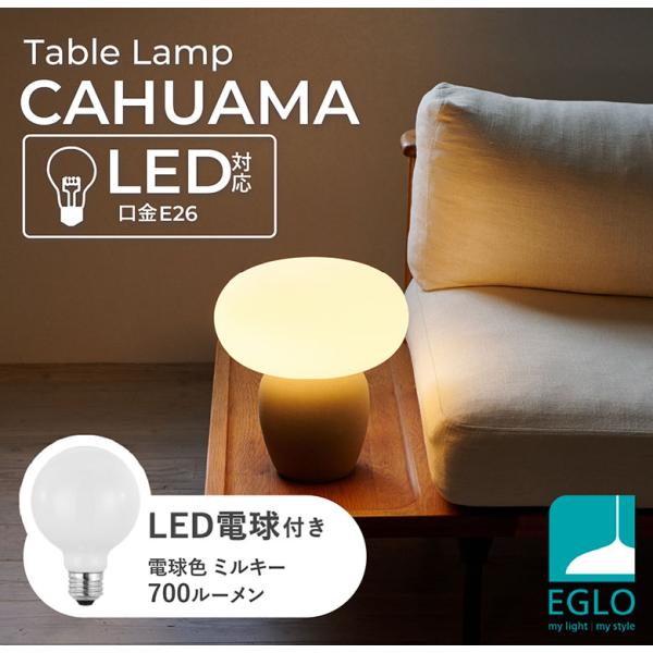 テーブルランプ 卓上ライト LED おしゃれ かわいい 間接照明 ガラス 陶器 北欧 レトロ フロアライト リビング 寝室 CAHUAMA ●電球付き 電球色 ミルキー