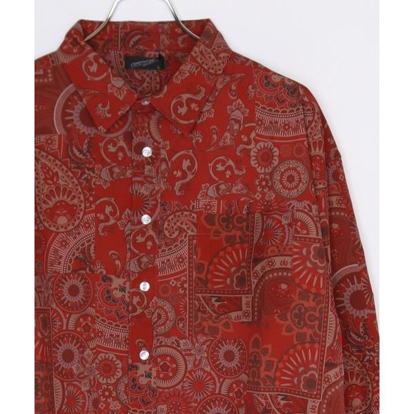 シャツ 総柄プリント ルーズサイズ とろみシャツ メンズ レディース