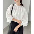 ブラウス シャツ レトロな刺繍が古着感をプラス。綿100%、切り替えエンブロイダリーブラウス レディース