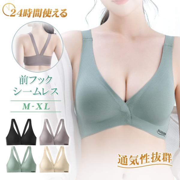 【レビュー特典】【2点10%OFF】ナイトブラ 前ホックブラ ブラジャー ノンワイヤー シームレス 美胸 パッド付き 取り外し可能 インナー 下着 ストレスフリー