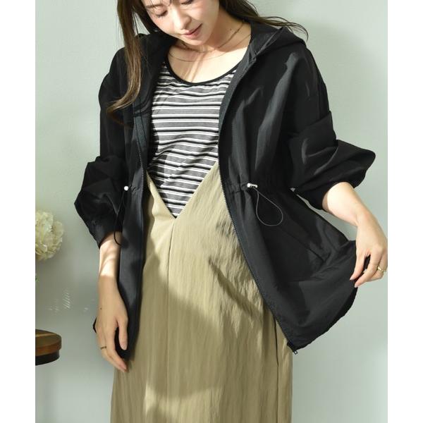 マウンテンパーカー ウインドブレーカー 「撥水加工」フード付ウエストドロストマンパー レディース