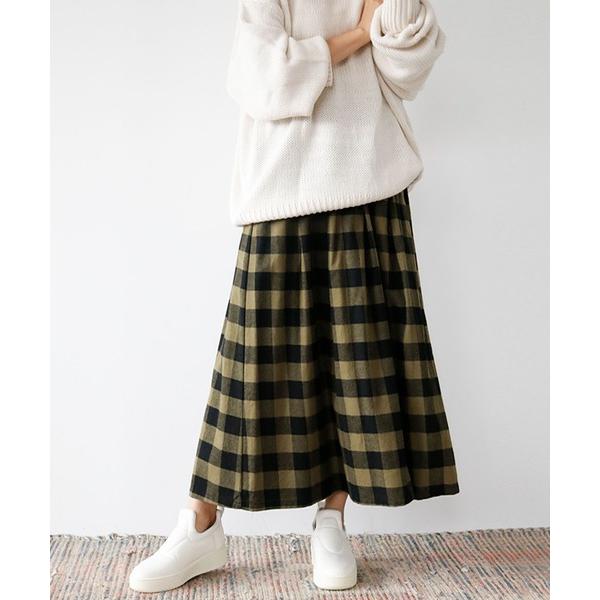 スカート ブロックチェックフレアロングスカート
