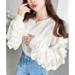 tシャツ ブロックジャガードボリュームフリルスリーブロングTシャツ レディース