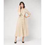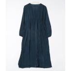 ワンピース シアー素材ツイルギャザーロングワンピース