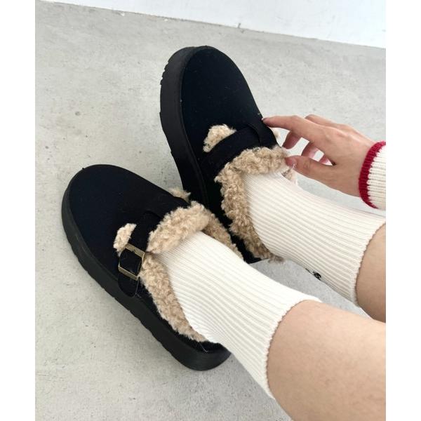 スリッポン ボアムートン厚底シューズ レディース