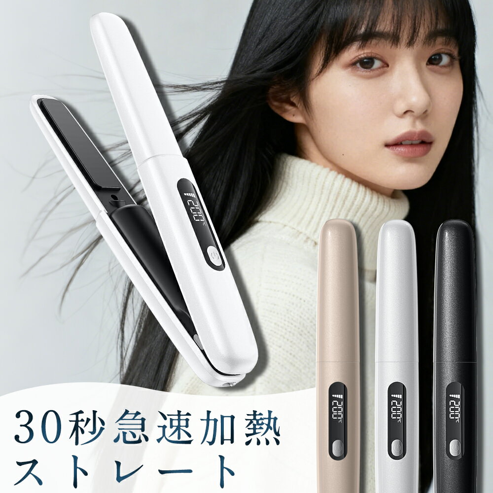 【30秒でツヤ髪を立ち上がり!】 コードレス ヘアアイロン ストレートアイロン 3段階温度調節 18mm 持ち歩き 充電式ヘアアイロン 痛まない コンパクト クリスマス ギフト プレゼントコ...
