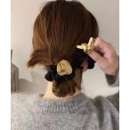 シュシュ メタリック モチーフ付き ベロア シュシュ ヘアゴム