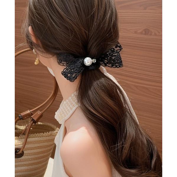 シュシュ シュシュ レースリボン パール ヘアゴム