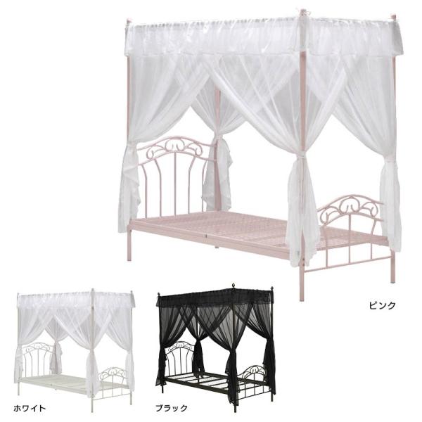 ベッドフレーム 天蓋付き スチールベッド ベッド シングル スチール製 姫系 乙女 カーテン付 シングルサイズ 白 ホワイト ピンク ブラック