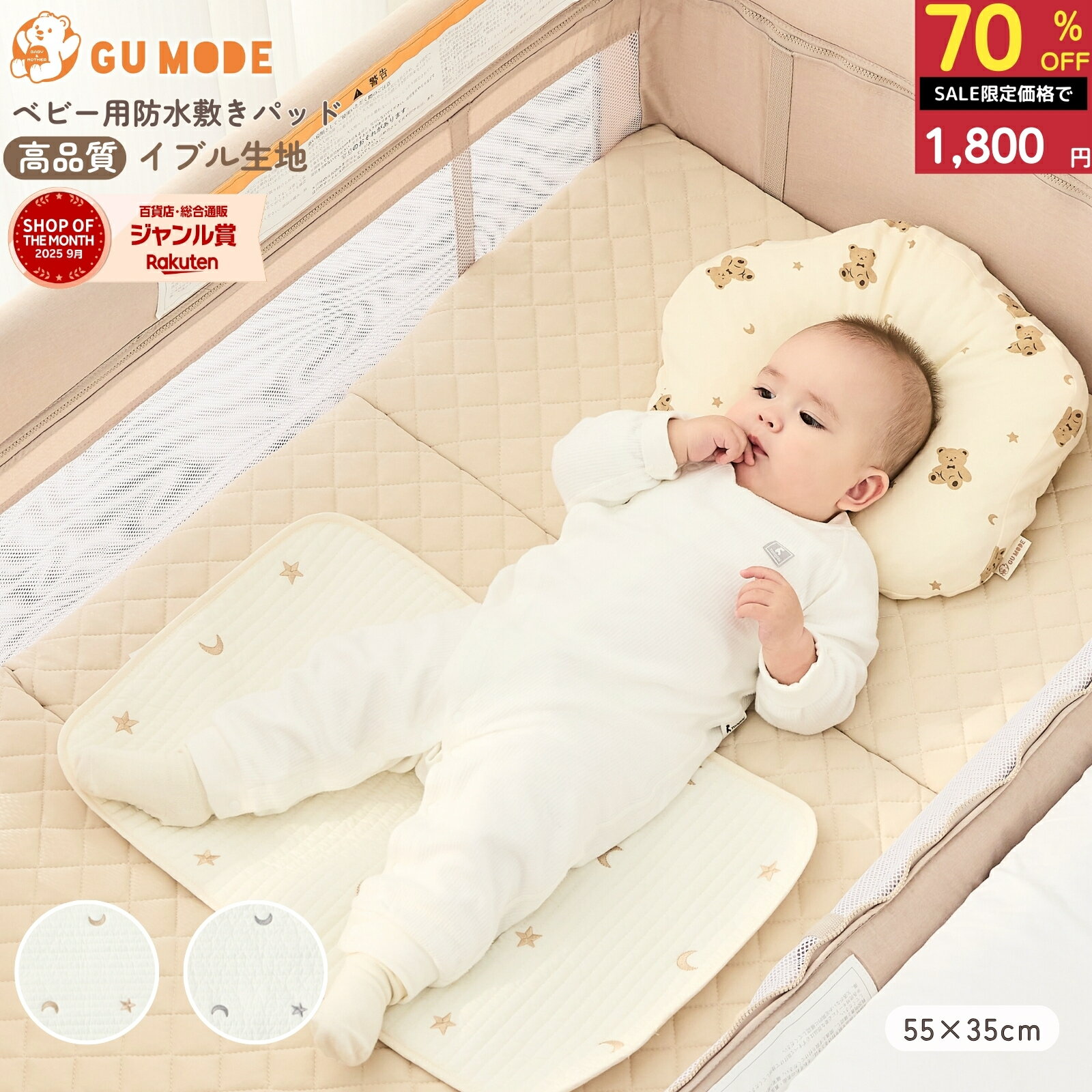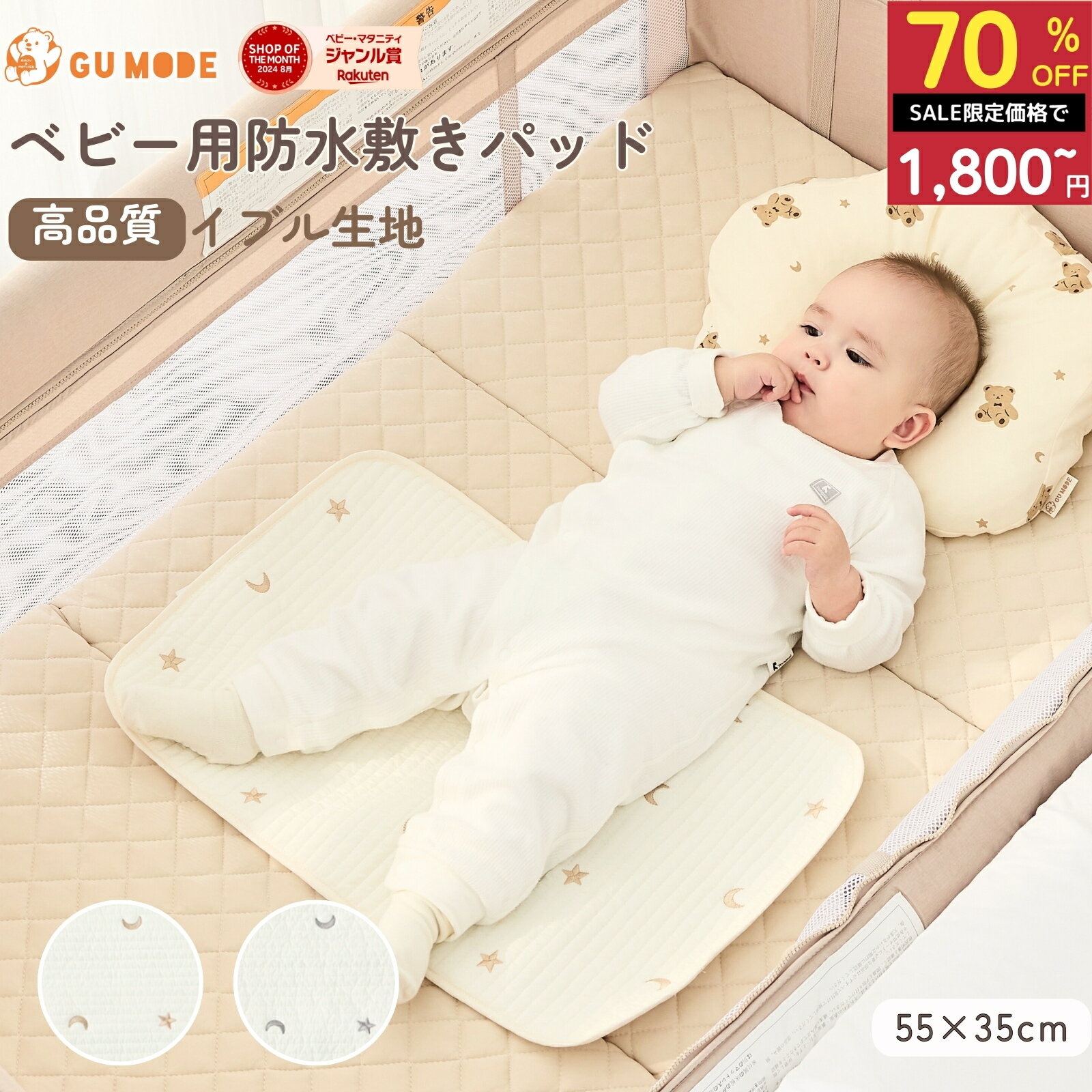 【スーパーSALE 70%OFF!!】【レビュー特典あり】ベビー用防水敷きパッド 55 35 吸水 防水 新生児 おむつ替え ベビーカー ベビーベッド 汗 ミルク おねしょ対策 GU MODE