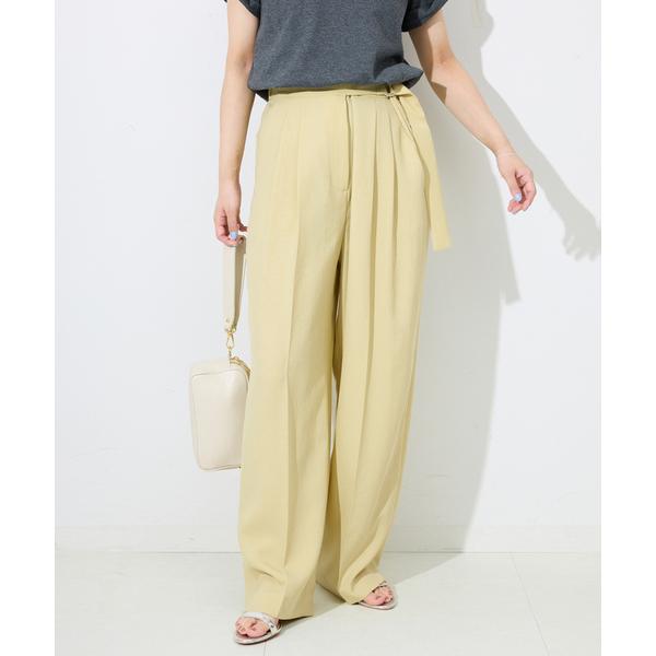 スラックス パンツ 2タックベルトレススラックスパンツ レディース