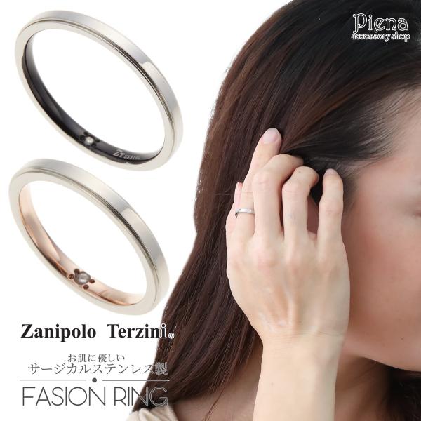リング レディース メンズ サージカルステンレス製 ダイヤモンド ペアリング Zanipolo Terzini ザニポロタルツィーニ お肌に優しい 爆買
