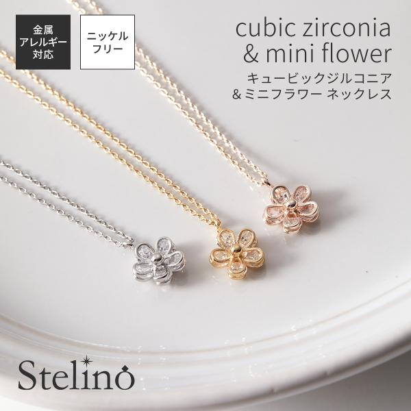ネックレス ペンダント レディース 花 フラワー キュービックジルコニア 金属アレルギー対応 大人 可愛い 普段使い デイリー プレゼント ギフト ニッケルフリー