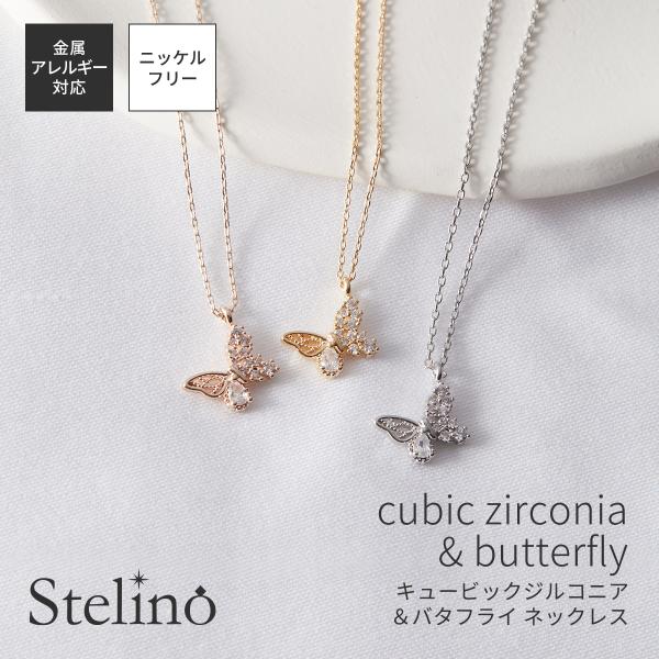 ネックレス ペンダント レディース ニッケルフリー キュービックジルコニア 蝶 バタフライ ビジュー 金属アレルギー対応 上品 誕生日 記念日 プレゼント ギフト